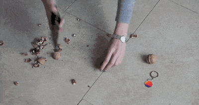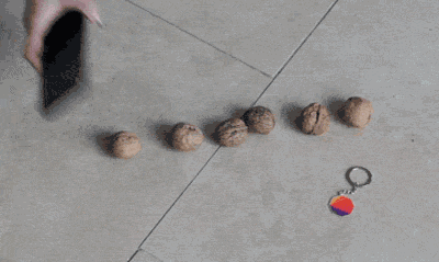 一个妹子在搞到真机后,也第一时间先砸碎了半斤核桃,以示敬意!