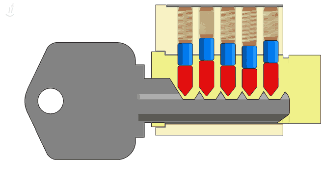 一把坚实的大锁挂在大门上,一根铁杆费了九牛二虎之力,还是无法将它撬开。钥匙来了,他瘦小的身子钻进锁孔,只轻轻一转,大锁就"啪"地一声打开了。