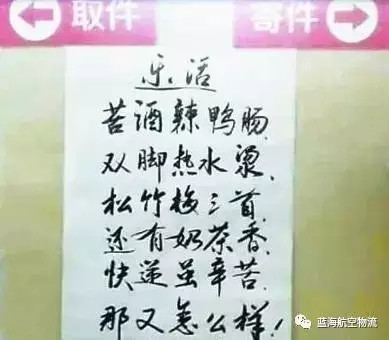 这首脍炙人口、令人充满联想的小诗,表达了“物流人送货至门口,用户却不知里面是什么”的复杂心情……