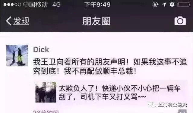 针对此事,王卫怒不可揭。王卫在朋友圈撂下狠话:“我王卫向着所有的朋友声明!如果我这事不追究到底!我不再配做顺丰总裁!”
