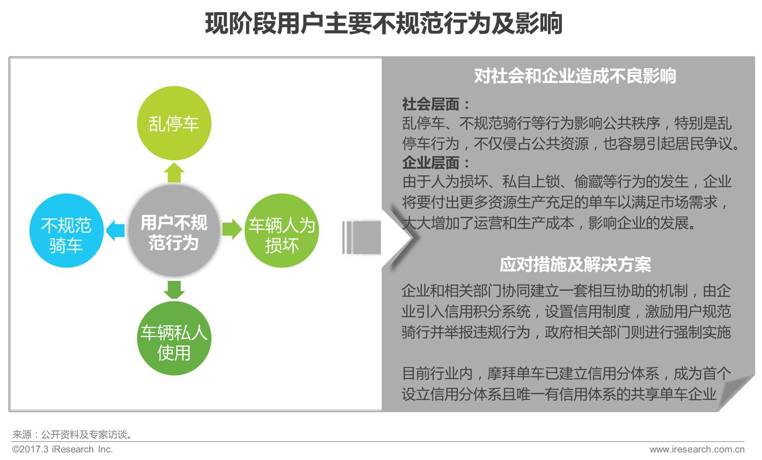 用户是共享单车行业快速发展的核心,引导用户规范用车,培养用户的诚信态度及行为,并辅助建立一套社会通用的诚信管理体系,不仅能够解决现阶段共享单车面临的一些用户问题,也能极大地促进社会规范化发展,为整体国民素质的提升起到促进作用。